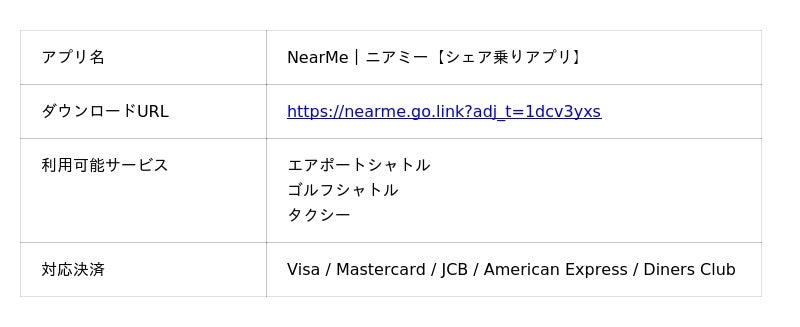 「NearMe」は、独自のAIを活用した最適なルーティングで、出発地から目的地までの移動をドアツードアで結ぶタクシーのシェアサービスです。その中でも、空港とその周辺の都市部を結ぶ空港送迎型の『エアポートシャトル』は、2019年8月のサービス開始から、 多くの方にご利用いただき、累計予約人数125万人※1を達成しました。現在は、全国16の空港※2(羽田空港、成田空港、伊丹空港、関西空港、新千歳空港、中部国際空港、福岡空港、那覇空港、旭川空港、帯広空港、青森空港、仙台空港、静岡空港、南紀白浜空港、徳島空港、北九州空港)と、空港周辺の都市部でご利用いただくことができます。対象エリアであれば、出発地となるご自宅から空港、そして空港から最終目的地まで一気通貫でつながるため、公共交通機関の乗り換えがなくなるなど、ストレスフリーな移動体験を提供することができます。また、貸切送迎サービスや、東京都と千葉県全域のゴルフ場と東京都23区内を結ぶゴルフシャトルなど、シチュエーションに応じて様々な移動のニーズに対応するための各種サービスを展開しています。