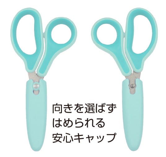 刃先は丸みを帯びた安全な形状で、誤って刃先に触れてもケガをしにくい設計です。表裏を選ばず簡単にはめられる安心キャップ付きで、カバンや道具箱の中で他のものが傷つくのを防止します。