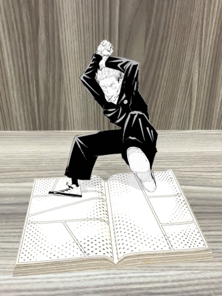 「JUMP」にちなみ、実際にジャンプをしてユーザー同士で競って遊べるエフェクトが登場! ジャンプを10回するまでの秒数をカウントするもので、ジャンプの度に「ジャンプ」の雑誌が積み上がる演出も! ぜひみんなで挑戦しよう!