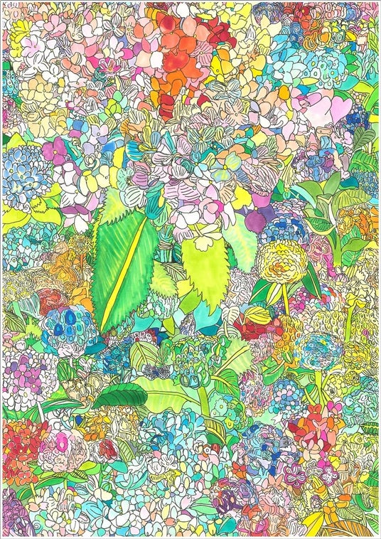 20代の若者たちが描画を始めて4年、コロナ禍で内向きにならず、自己表現や発散になればと始めました。皆さん自由な発想で熱心に描き続ける中で沢山の受賞をしましたが、より多くの方に見ていただきたくホテルロビー展に定期的に参加させていただいています。絵のご縁で若者たちに自信と喜びを頂いています。