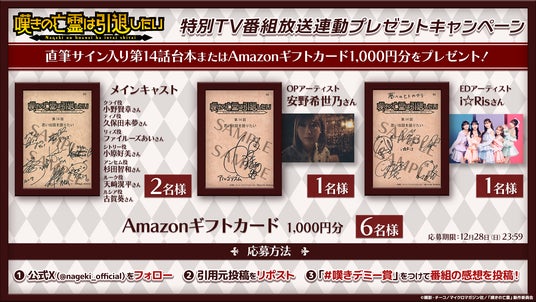特番のTV放送を記念して、直筆サイン入り台本やAmazonギフトカード(1,000円分)が合計10名様に当たるキャンペーンを開催します。