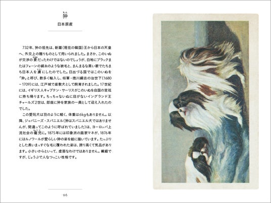 気品あふれる天皇の愛玩犬から、野山を駆け抜ける狩猟の名手、そして健気に働く牧羊犬まで。本書では、世界中で愛される79種類の犬種をピックアップ。 犬たちがどのようにして人と出会い、歴史をともにしてきたのか。それぞれの犬種が持つルーツや、人との深い絆のエピソードを紐解きます。そして、どこか懐かしくて温かい、繊細なアンティーク調の図版は、いぬの生き生きとした表情や毛並みを美しく描き出します。