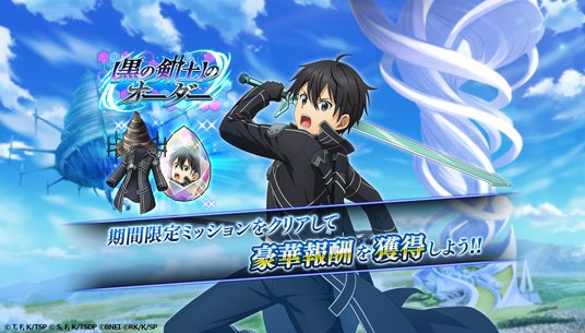 コンプリート報酬で、[黒の剣士]キリトを最大強化できる【記憶石】がGETできる限定のミッションを開催中!ぜひミッションにチャレンジしてください!