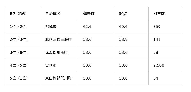令和7年12月17日に大東建託株式会社(窓口受託会社:株式会社ユニ・プランニング社)による「街の幸福度&住み続けたい街ランキング2025〈宮崎県版〉」が公表され、都城市は住み続けたい街ランキングにおいて1位を獲得しました。