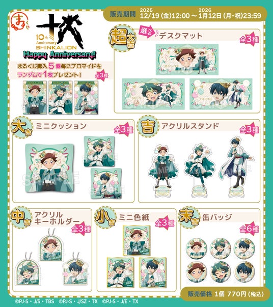 株式会社エディア(本社:東京都千代田区、代表取締役社長:賀島 義成)の子会社、株式会社ティームエンタテインメント(本社:東京都千代田区、代表取締役社長:賀島 義成 以下:ティームエンタテインメント)は、2025年12月19日(金) 12:00よりTVアニメ『新幹線変形ロボ シンカリオン』シリーズの新規オリジナルグッズを、インターネットで購入できるオンラインくじサービス『まるくじ』にて販売開始したことをお知らせいたします。