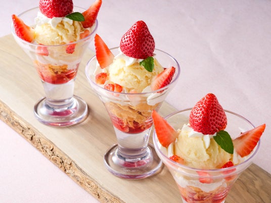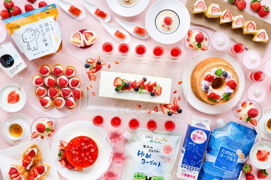 そんな中、今回ご縁のあった岩手の乳業メーカー(おおのミルク工房・YUDAミルク・(一社)田野畑村産業開発公社・八重樫牛乳)の乳製品を使用し、特別メニューを製作しました。岩手県の乳製品と、毎年女性やファミリー層に大人気のいちごフェアのコラボレーションによる、甘酸っぱさと優しいコクの”しあわせ時間”をご堪能いただくと共に、お気に入りの岩手県産乳製品を見つけ、ご自宅でもお楽しみいただければと思います!