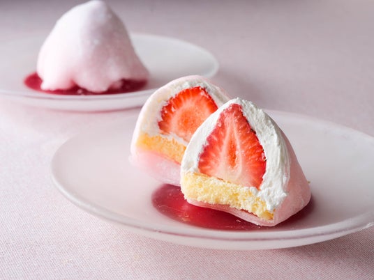 たのはた牛乳を使用したミルキーなカスタードクリームと、みずみずしい苺をやわらかな求肥で包んだクリームいちご大福です。やさしい甘さのクリームと苺の酸味が相性よく、ふんわりとした口どけを楽しめる一品です。