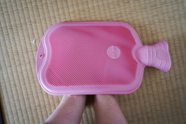 私はこの湯たんぽを足の甲に置いて、脚の冷え防止に活用。