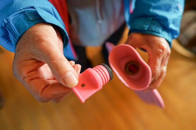お湯を入れてから、蓋を閉じるとき中の空気を抜きながら閉めるのがコツ。そうすることで、いっそうゴムの柔軟さを感じることができます。
