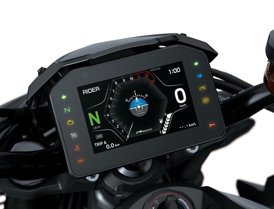 さらに、現代のスーパーネイキッドとして、KCMF※、KTRC※、KQS※、KIBS※、そしてインテグレーテッドライディングモードなど、高度なライダーサポートテクノロジーを搭載することで、幅広いライディングシチュエーションに対応しています。加えて、エレクトロニッククルーズコントロールやスマートフォン接続対応の5 インチTFT インストゥルメントなどが、快適なライディング体験を提供します。