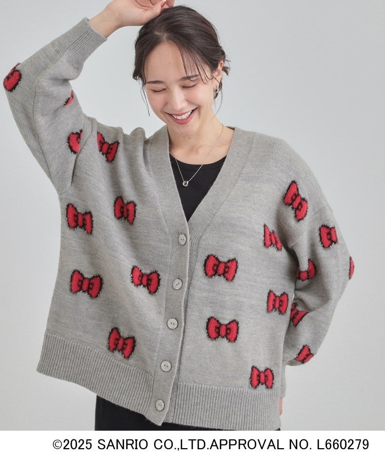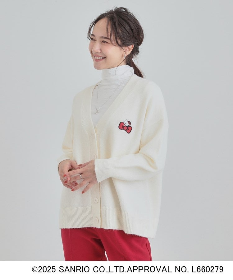 ふわふわのフェザー糸で、ハローキティのオリジナルデザインを表現したニットカーディガン。程よい肉感で、ゆったりと羽織りやすいサイズ感です。ナロースカートやスキニーパンツを合わせたメリハリのあるコーディネートもおすすめです。