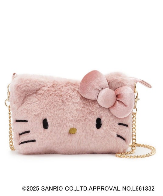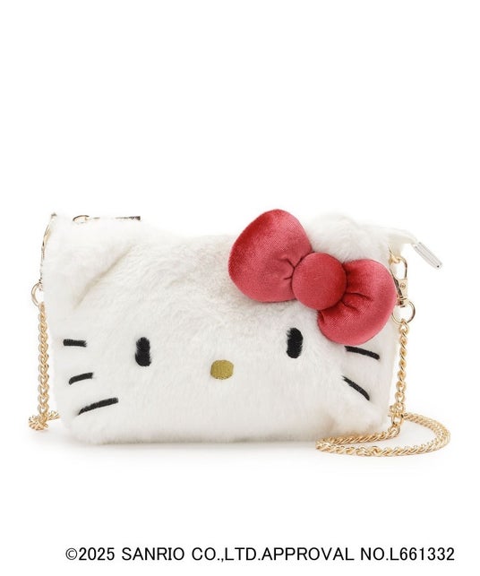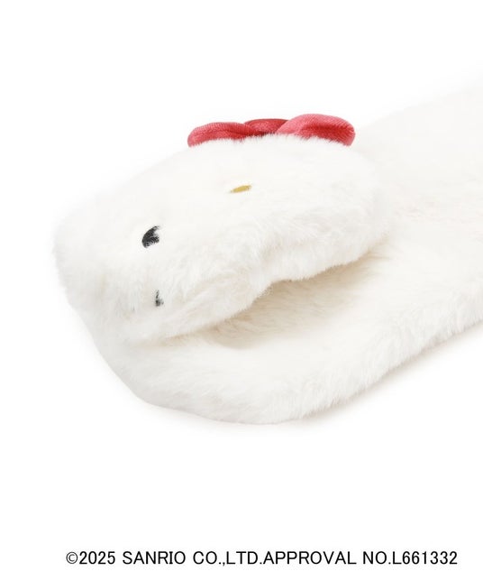 ふわふわのハローキティフェイスがポイントになったティペット。差し込むだけで形が決まり、簡単に着用できます。ベルベット調生地のリボンが冬らしいアクセントに。