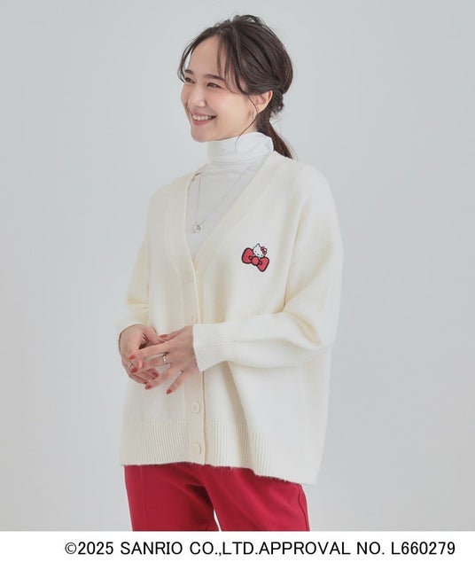 今回登場するハローキティコラボは、冬の着こなしをかわいく演出するニットアイテムを中心にラインナップ。シューラルー定番の“もちもちニット”をベースにしたスウェットライクニットや、フェザー糸でハローキティをデザインしたVネックカーディガンなど、大人のデイリーコーデに映えるアイテムを豊富に展開いたします。