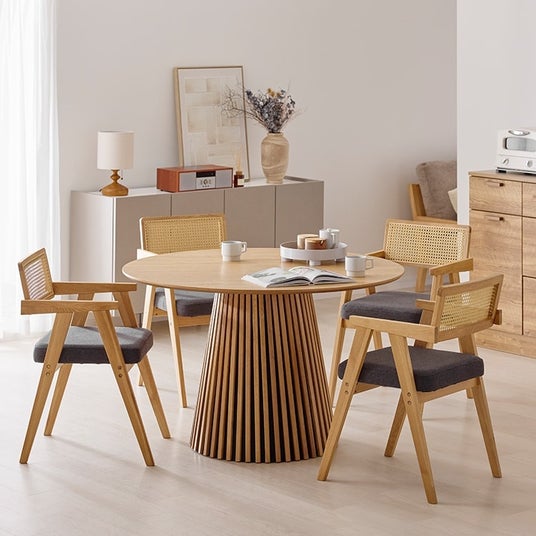 4人掛けセットで、¥93,970(税込)!新商品人気No.1の空間を格上げする、円形ダイニングシリーズ。
