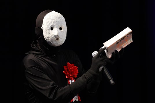 イベントの最後には、会場に集まった書店員ら約30名が雨穴の仮面を被り、「変な記念撮影」を実施。ステージ上でのパフォーマンスに加え、読者や書店員をはじめとする関係者一人ひとりに直接感謝の言葉を述べ、雨穴にとって初となる「変な授賞式」は、大きな拍手の中で幕を閉じた。