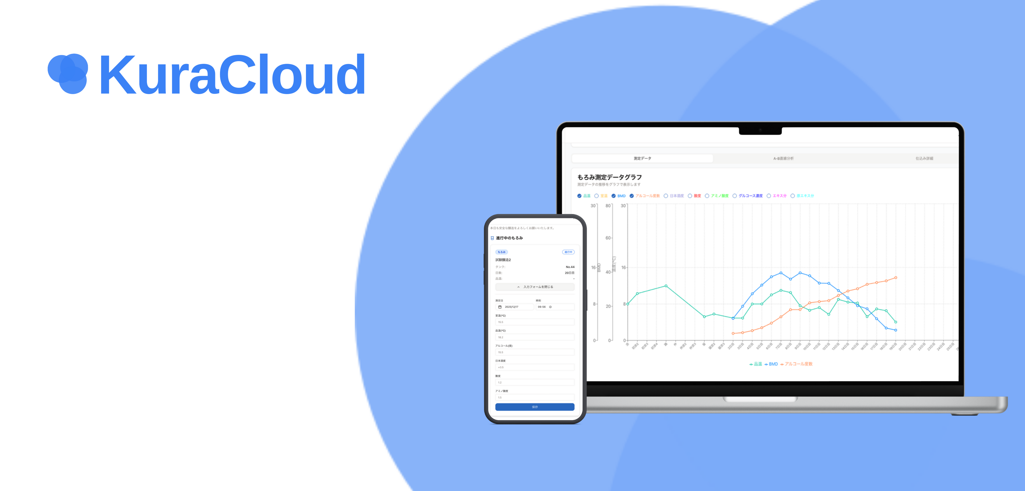 SAKENOVA BREWERYの最大の特徴は、伝統的な職人の技と最先端テクノロジーの融合にあります。 私たちは、酒造りの工程管理やデータ分析を行う醸造管理システム「KuraCloud(クラクラウド)」を自社開発いたしました。