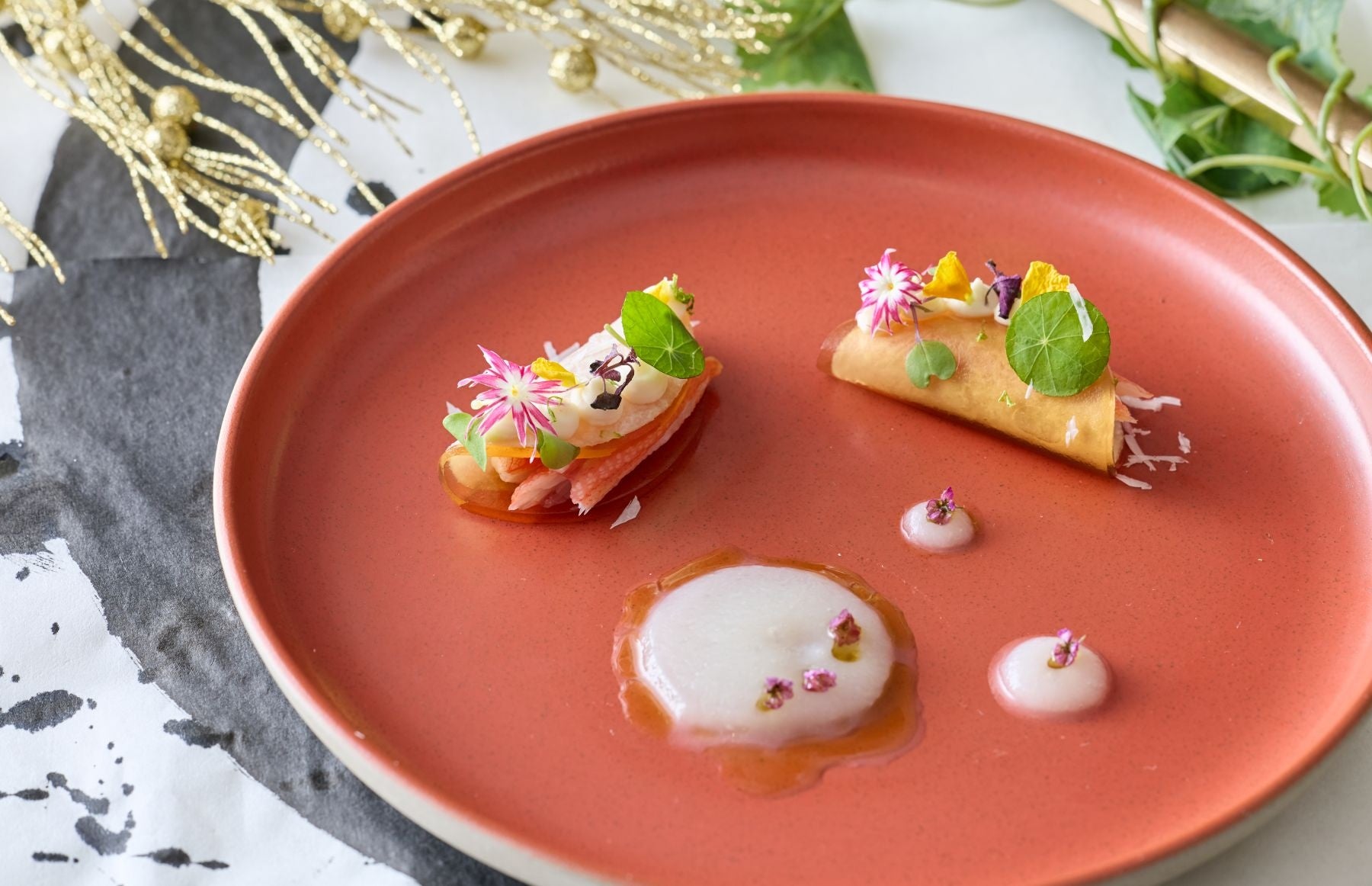 ホテル開業10周年を記念して、フレンチレストラン『グラマシースイート』では、フランスのソースや調理法で味わいを引き出す伝統的な技法と素材本来の味を引き出す和食の技法や箸文化を融合させ、自由な発想・見た目の美しさにもこだわった『フレンチジャポネ』をテーマにしたコース料理を提供いたします。味覚、嗅覚さらに視覚からもお楽しみいただけるフレンチコースを2026年1月13日(火)~3月12日(木)の期間限定で販売いたします。