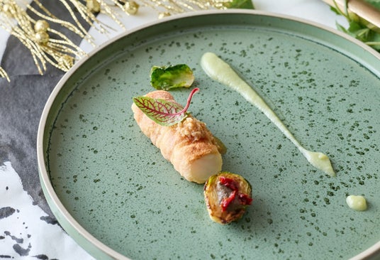 【魚料理】寒鱈とパンチェッタ セモリナ衣 愛知キャベツともろみ麹の焦がしバターソース