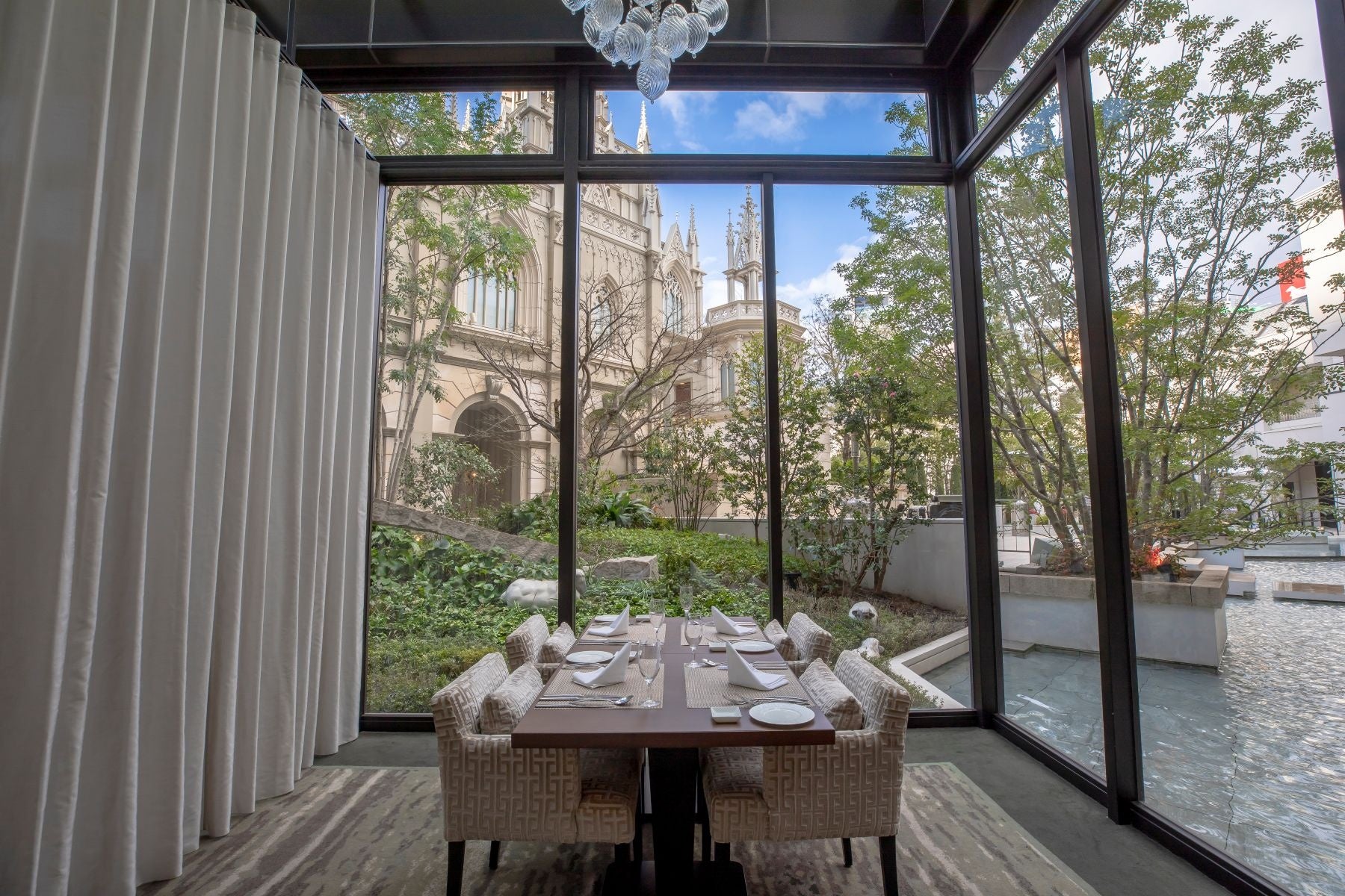 ▲大聖堂やお庭の見えるカーテン個室