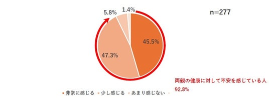 寒い実家で生活する両親の普段の行動の中で、ヒートショックの発生などの健康面での不安を感じている子世代は合計92.8%となりました。
