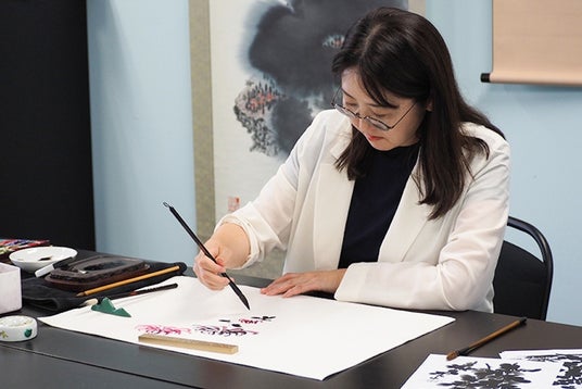 国際墨画会副会長・石坂美穂氏による月替わりに四季折々のテーマで水墨画を学ぶレッスン。デモンストレーションと水墨画の歴史や筆法を交えたレクチャーを交えたレッスンは、筆の動きに身をゆだね、水墨画で四季を愛でるひとときを楽しめます。