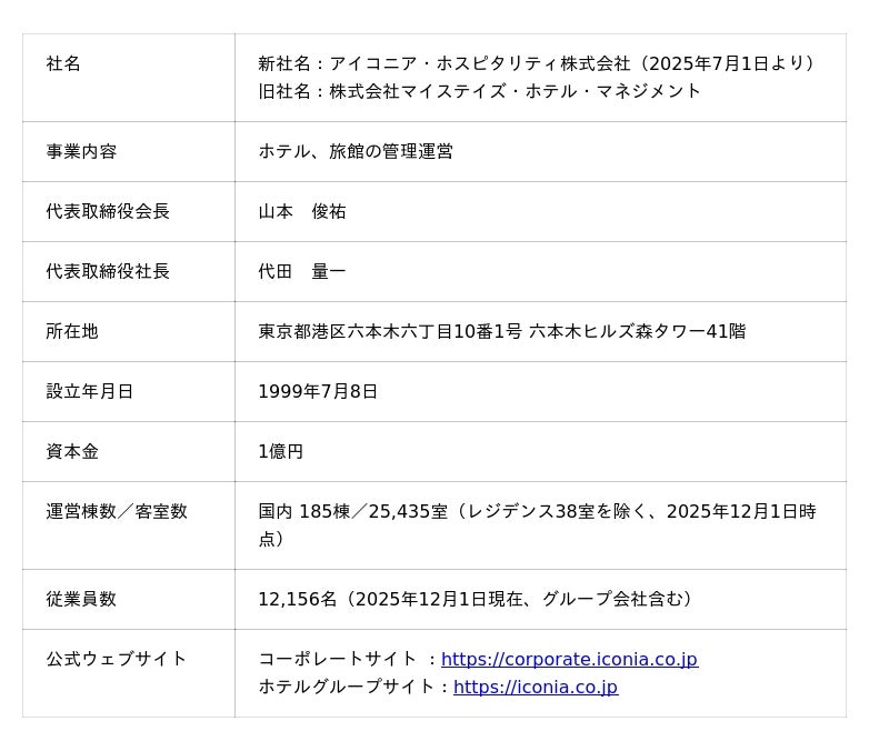 アイコニア・ホスピタリティは、宿泊特化型やフルサービスのコミュニティホテル、リゾートホテル、温泉ホテル・旅館などさまざまな業態の施設でお客様をお迎えしています。