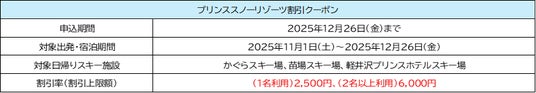 ●JR SKISKIクーポン、西武・プリンスホテルズワールドワイド割引クーポン、その他おトクな割引クーポンを配布しています。