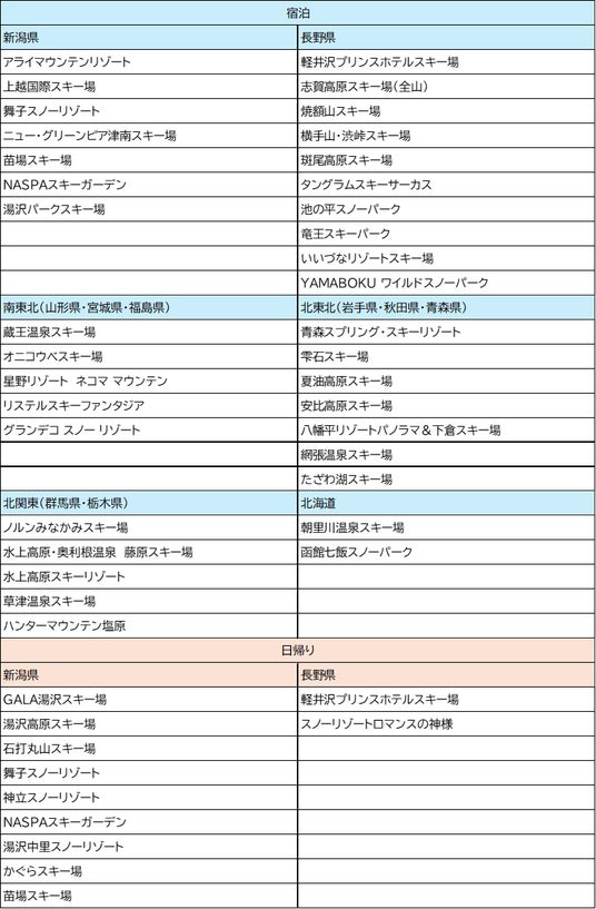 ※取り扱いスキー場や商品は変更になる場合がございます。予めご了承ください。