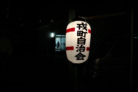 【夜警詰め所の様子 提灯を灯し、地域の夜を見守る夜警活動】