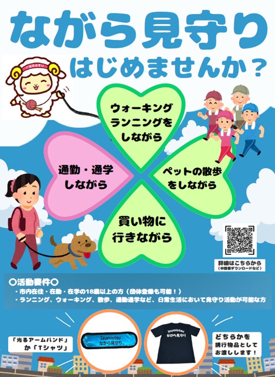 そこで泉大津市では、昨年9月から「ながら見守り」の取り組みを進めてきました。通勤や買い物、散歩、ランニングなど、日常の延長で、少しだけまちを気にかける行動です。時間がなくても、体力に自信がなくても、できることを、できる範囲で。それがながら見守りです。