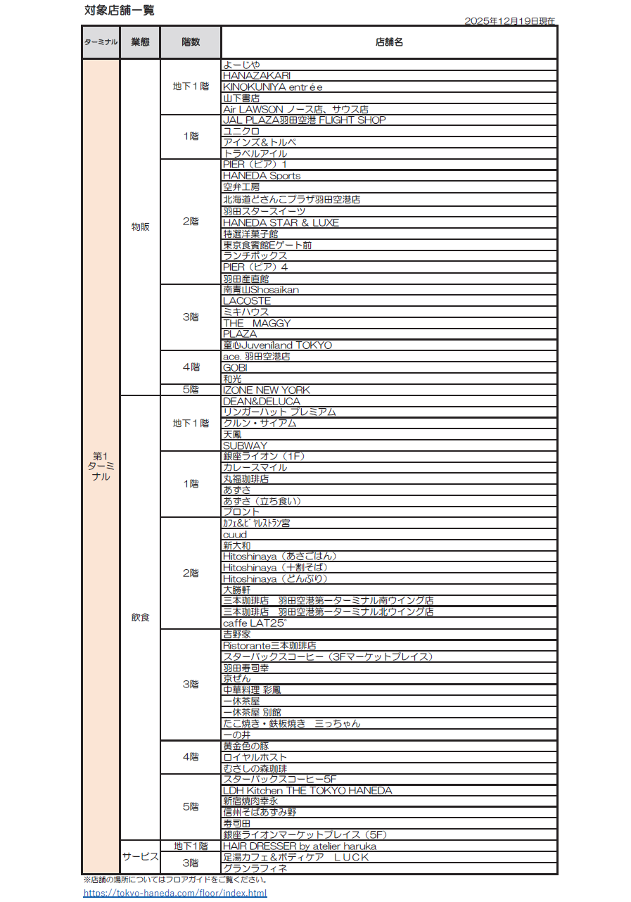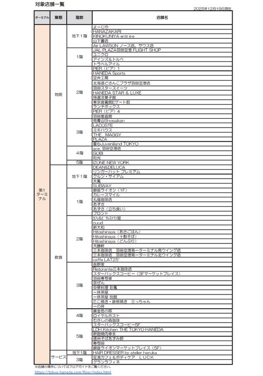 対象店舗:第1・第2ターミナル各店舗(レストラン含む)
