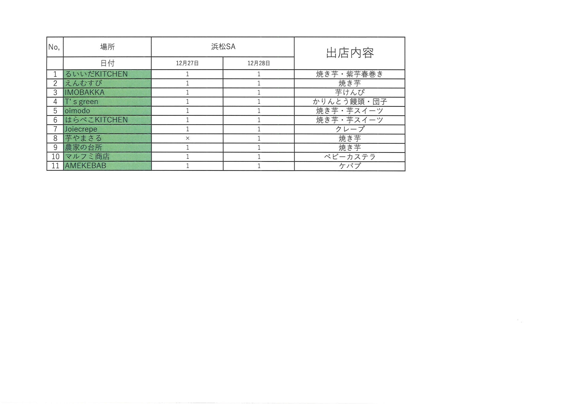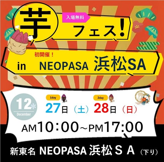 東海地方を中心に延べ35万人を動員しているあの芋フェス!の年内最後を飾る2025年12月27日~28日「第1回芋フェス!IN浜松SA(下り)」の出店者が本日発表された。