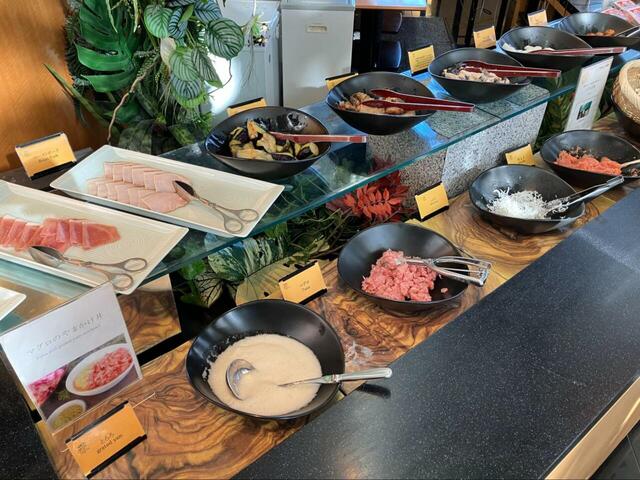 ベーコンも香ばしく焼かれていて、オムレツと合わせるとさらに満足感アップ。どれも「ブッフェの脇役」というよりは、ひと品ずつしっかり主役の存在感があって、和食派でも洋食派でも楽しめるラインナップだと感じました。
