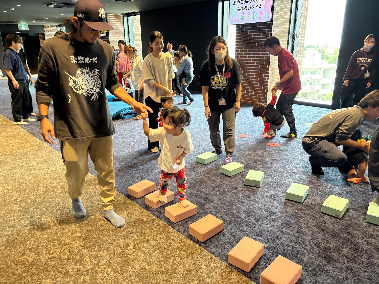 通常とは異なり、4Fラウンジを全面開放し、親子で安全に体を動かせる環境を整備。