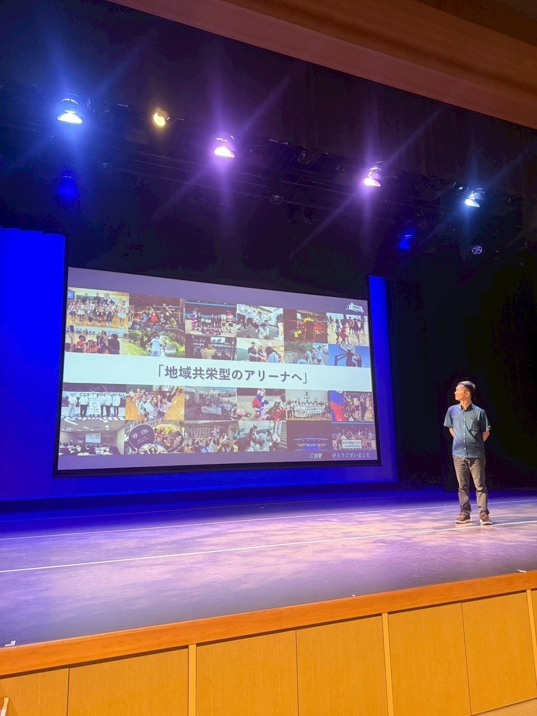 に、沖縄アリーナ社の松原執行役員が講演者として登壇しました。