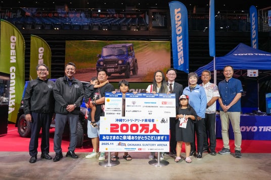「オキナワモーターショー2025」開催中に節目の瞬間を迎え、花城大輔市長をはじめ多くの関係者・市民の皆様と記念セレモニーを実施。