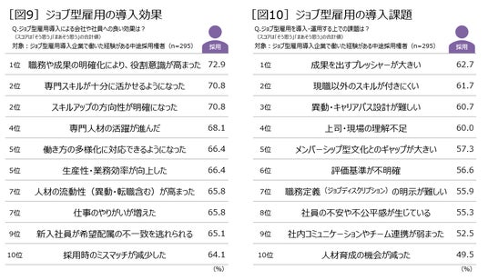 ここからは、ジョブ型雇用を導入している企業に勤めている、またはジョブ型雇用で就職・転職した経験がある中途採用権者295人に、ジョブ型雇用の実態を聞きました。