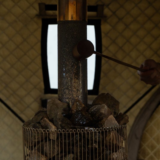 伝泊 The Beachfront MIJORAの目の前に広がる海辺に設置されたテントサウナで、海風や潮の香りを感じながら自然と向き合う時間を過ごせます。島のサウナ事業者がマンツーマンでサポートし、1人1人に合わせてココロとカラダを調える“島の自然と対話する時間”を演出します。