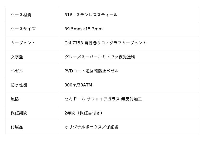 またラリークロンはクロノグラフでありながら300m/30気圧の防水性能でダイバーズウォッチとしても機能する本格的なスポーツウォッチです。