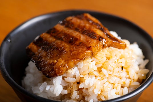 たれ焼肉を白米の上にバウンドさせて、口いっぱいに頬張る!
