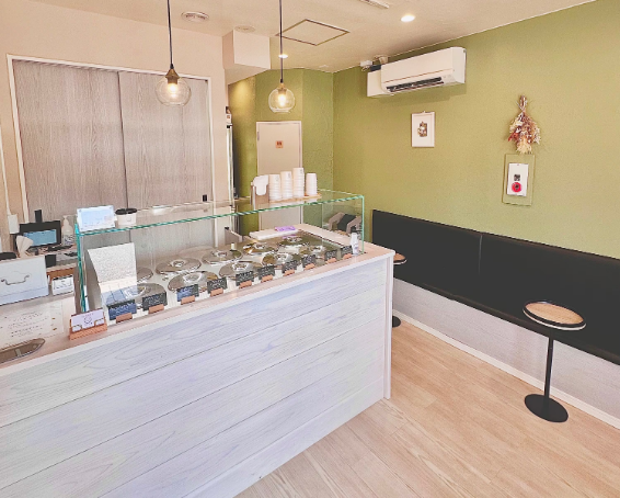 店主兼オーナーの石過新介さんは臨床工学技士、霞実さんは看護師の経歴を持つご夫婦。また、小さな子どもを持つ親としての経験から、“子どもたちをにっこり笑顔に”をモットーにたくさんの想いやアイデアを詰め込んで営業しています。おいしさを保つため、ジェラートが見えない珍しいショーケースもそんな工夫の一つ。