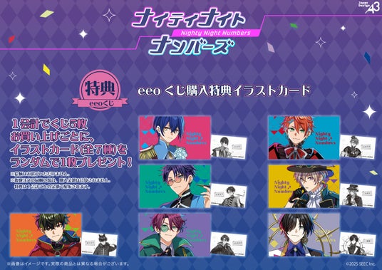 『ナイティナイトナンバーズ』の「eeoくじ」を1会計で5枚お買い上げごとに、イラストカード(全7種)をランダムで1枚プレゼント。