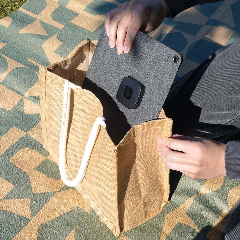 コンパクトで持ち運びに便利折りたたむとA4サイズより小さく、重さは410gでどこへでも気軽に持ち運べます。外出先でサッと取り出して充電できるスマートさです。