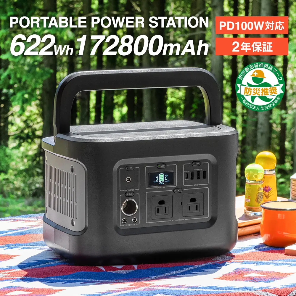 ・非常時やアウトドアで電源が使える ポータブル電源 622Wh(172,800mAh) OWL-LPBL172801-BK