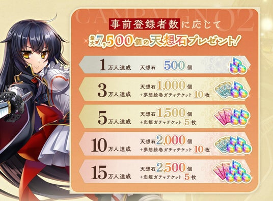 事前登録者数にあわせて天想石や恋姫ガチャチケット、夢想絵巻ガチャチケットをプレゼント!