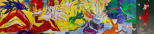 近年は、色面が堆積した岩盤のような画面に、様々な動物達を輪郭線で描出する新たな試みも見られ、その画風は更なる発展を予感させる。