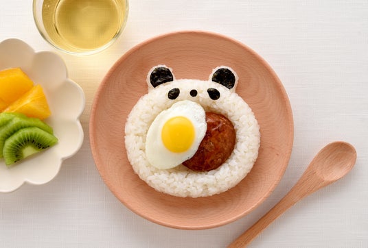 おかずを盛りつけるだけでいつものご飯がかわいく大変身します。白ご飯だけでなく、ご飯自体に麺つゆやケチャップなどで色付けするのもオススメです。また、海苔パーツを組み合わせれば、クマだけでなくパンダを作ることもできます。