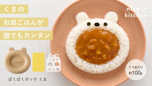 アーネストのデコ弁グッズブランド【nico kitchen(ニコキッチン)】から、お皿型のご飯が作れる「ぱくぱくポッケ くま」が発売します。おかずを乗せるとかわいいワンプレートごはんに!ごはん型と、海苔やチーズなどを型抜きできるカッターがセットになっており、誰でも簡単に作ることができます。当社のロングセラー商品「myフォルム あーん!ぱくっ!」(2018年発売)のミニサイズ版で、ご飯の量を100gに減らし、小さなお子さんでも食べやすいサイズにしました。