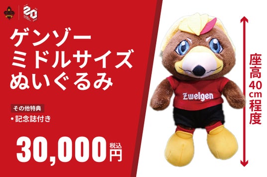 ミドルサイズぬいぐるみツエーゲン金沢の人気者たち「ゲンゾー」「ナンシー」「ゲンゾイヤー」「ヤサガラス」が、座高40cm程度の大きさになったぬいぐるみが登場!