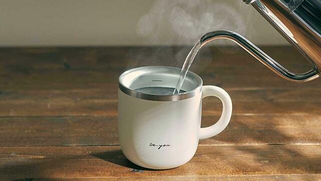 ドウシシャが白湯を飲むために作った「白湯専科マグカップ」を使えば、沸騰したお湯を短時間で飲みやすい温度まで下げてくれて、そのあと約1時間もキープしてくれますよ。